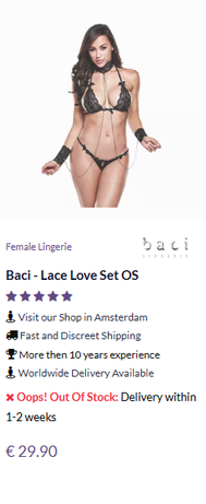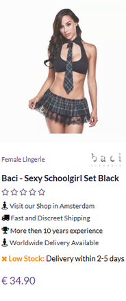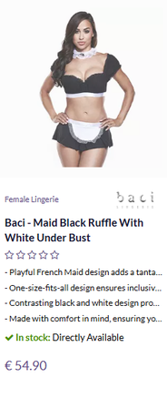 With the Baci Dream Collection you can bring yours and your partners naughtiest dreams to live. The large assortiment Baci has to offer gives you lots of upportunities to continuely switch between different characters and sexy sensual looks. From now on you will be cleaning your house wearing a sexy maid outfit and you enjoy your nights wearing a kinky monokini with cuffs and a blindfold. For every mood Hot Stuff has a Baci lingerie set that will fit your needs.
